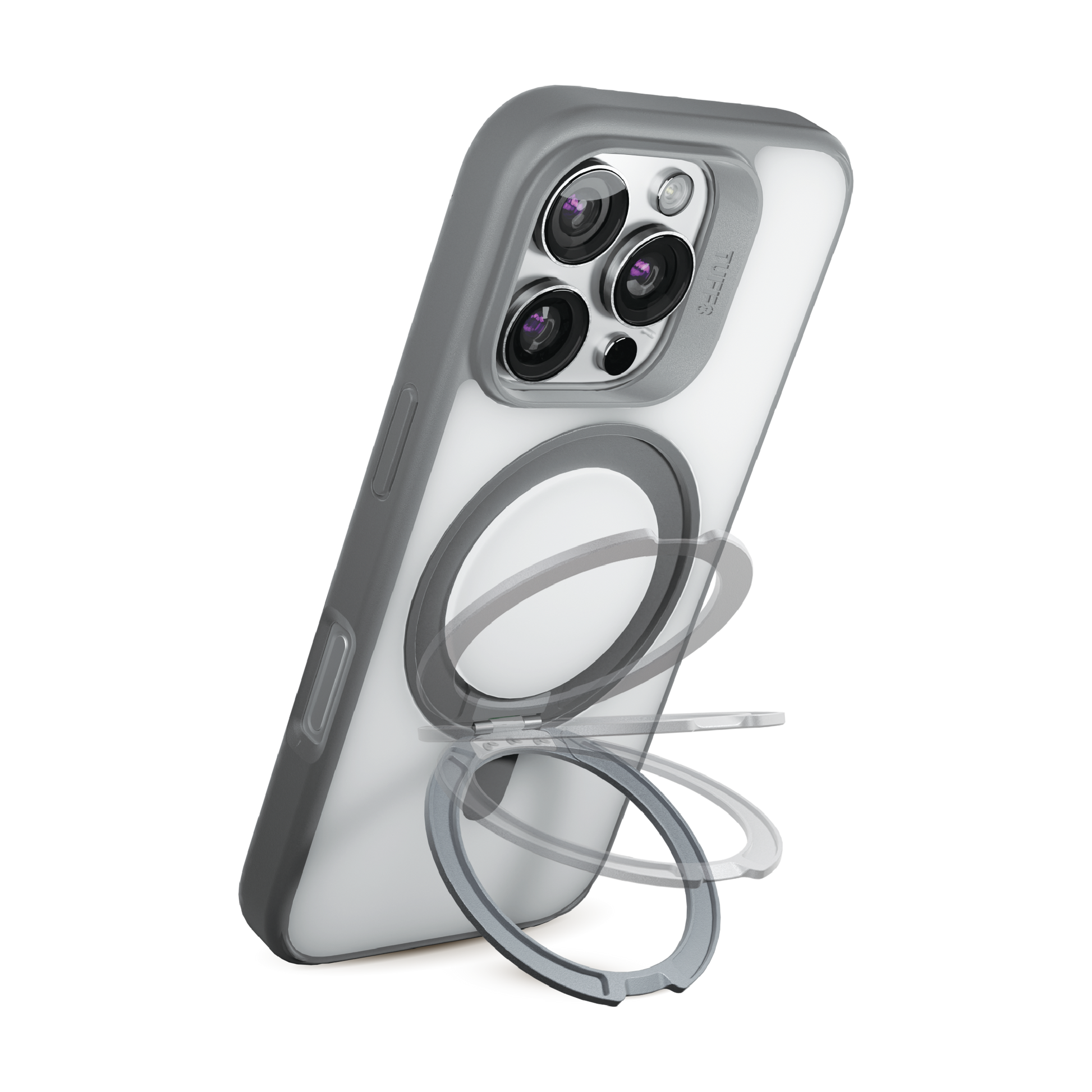 • Support rotatif à 360° : Support intégré qui pivote selon plusieurs angles pour une utilisation mains libres du téléphone.