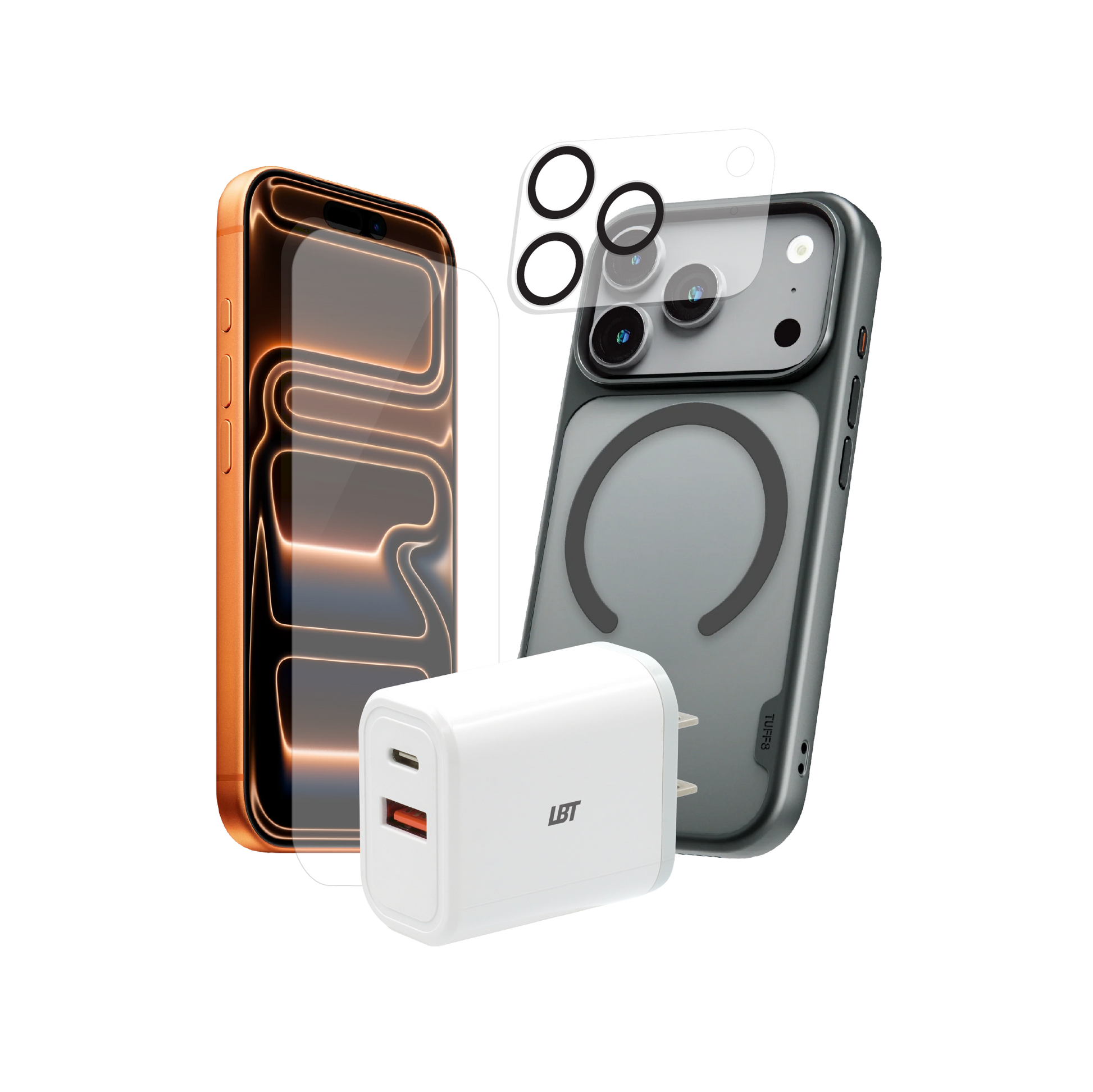 Pack 4-en-1 pour iPhone 17 Pro Max : coque GlideGuard, verre trempé, protection d’objectif, chargeur PD 35 W